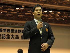 中川前主将は冒頭の挨拶で「春夏連覇を成し遂げる事ができたのは皆様の応援のおかげです」と感謝を述べました。