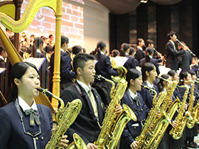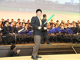 吹奏楽部が甲子園での応援歌や、会場のリクエストに応えて演奏を披露するなど祝勝会は大いに盛り上りました。