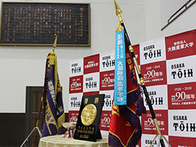 平成30年11月7日(水)、桐蔭アリーナにて、史上初2度目の春夏連覇を成し遂げた大阪桐蔭高等学校硬式野球部の祝勝会が行われました。
