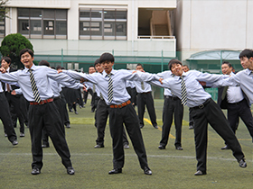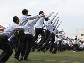 最後に、全校生徒と教員で肩を組みながら校歌を熱唱し、「踊る産大附属」が終了しました。